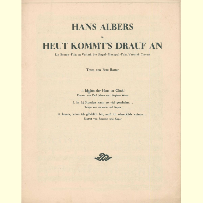 1 - Ich bin der Hans im Glück 2 - In 24 Stunden kann so viel geschehn 3 - Immer, wenn ich glücklich bin, muss ich schrecklich weinen 1 - Paul Mann und Stephan Weiss 2 - Jurmann und Kaper 3 - Jurmann und Kaper |