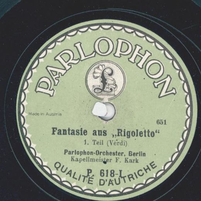 Parlophon-Orchester: F. Kark - Fantasie aus Rigoletto, Teil I und II